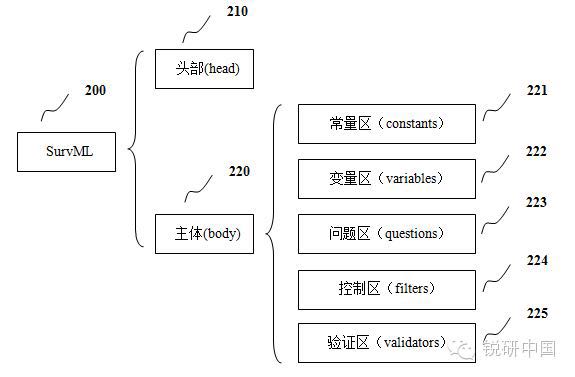 为了解决这一问题,萌泰科技自主研发了基于开放式脚本XML 语言的、可扩展的问卷设计脚本语言—SurvML ( Survey MarkedLanguage,问卷标识语言)。
